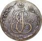 5 копеек 1787 года. Короны королевские. "ЕМ" меньше, Биткин # 1294 (R2), Петров нет руб., Ильин 40 руб. |