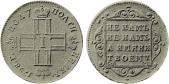 1 рубль 1796 года. С портретом Павла I. Пробный , Биткин # 219 (R4), Петров 500 руб., Ильин 300 руб. Из коллекции:
