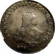 1 рубль 1726 года. Петербургский тип, портрет вправо Трилистники разделяют надпись реверса, Биткин # 144 (R1), Петров 15 руб., Ильин 8 руб. |