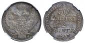 30 копеек - 2 злотых 1837 года. Хвост орла прямой, Биткин # 1155 |