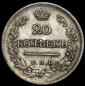 20 копеек 1823 года. Широкая корона, Биткин # 206, Петров нет руб., Ильин 3 руб. |