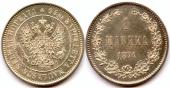 50 пенни 1876 года. Биткин # 640 (R3), Ильин 25 руб. |
