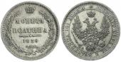 1 рубль 1843 года. Орел 1841. Венок 8 звеньев, Биткин # 202, Петров 1,5 руб., Ильин 3 руб. |
