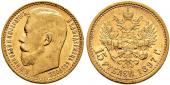 15 рублей 1897 года. Три последние буквы заходят за обрез шеи, Биткин # 2, Петров нет руб., Ильин нет руб. |