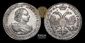Полтина 1721 года. Портрет в наплечниках С ветвью на груди. Над головой точка, Биткин # 677 |