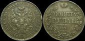 1 рубль 1834 года. Орел 1832, Биткин # 161, Петров 1,5 руб., Ильин нет руб. |