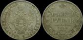 1 рубль 1850 года. Св. Георгий без плаща. Большая корона на реверсе, Биткин # 225, Петров 1,5 руб. |