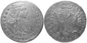 1 рубль 1725 года. Петербургский тип, портрет влево "СПБ" в конце надписи. "САМОДЕРЖIЦА", Биткин # 82 (R2), Петров нет руб., Ильин 15 руб. Из коллекции: