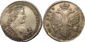 Полтина 1733 года. Портрет смещен влево. Крест державы простой, Биткин # 145, Петров 2,5 руб. |