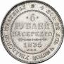 В таблице показаны цены на царскую монету 6 рублей 1835 года СПБ выполненной из платины. Продажи фиксируются на публичных нумизматических аукционах всего мира. Стоимость продажи указана без учета комиссионного вознаграждения аукциона.