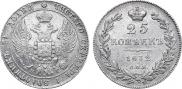 В таблице показаны цены на царскую монету 25 копеек 1832 года СПБ-НГ выполненной из серебра. Продажи фиксируются на публичных нумизматических аукционах всего мира. Стоимость продажи указана без учета комиссионного вознаграждения аукциона.