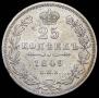 В таблице показаны цены на царскую монету 25 копеек 1849 года СПБ-ПА выполненной из серебра. Орел 1845-1847. Продажи фиксируются на публичных нумизматических аукционах всего мира. Стоимость продажи указана без учета комиссионного вознаграждения аукциона.