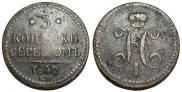 В таблице показаны цены на царскую монету 3 копейки 1840 года ЕМ выполненной из меди. Вензель украшенный. "ЕМ" большие. Продажи фиксируются на публичных нумизматических аукционах всего мира. Стоимость продажи указана без учета комиссионного вознаграждения аукциона.