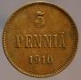 В таблице показаны цены на царскую монету 5 пенни 1910 года выполненной из меди. Продажи фиксируются на публичных нумизматических аукционах всего мира. Стоимость продажи указана без учета комиссионного вознаграждения аукциона.