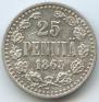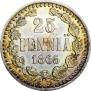Согласно аукционным продажам, средняя цена данной монеты на 25 декабря 2025 составляет - 11000 рублей для регулярного чекана. Самый дорогой экземпляр, выставлялся 23 ноября 2013 года в Хельсинки на финском аукционе Suomen Numismaattinen Yhdistys r.y, лот номер 760. На торгах стоимость достигла 1850 евро. Для серебряных 25 пенни 1865 года с буквами S - это является самой высокой ценой на сегодняшний день.