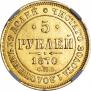 В таблице показаны цены на царскую монету 5 рублей 1870 года СПБ-НІ выполненной из золота. Продажи фиксируются на публичных нумизматических аукционах всего мира. Стоимость продажи указана без учета комиссионного вознаграждения аукциона.