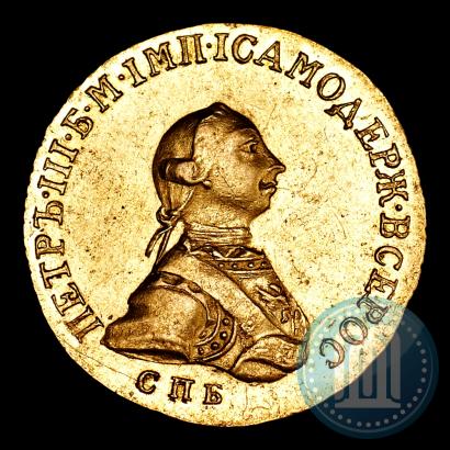 5 рублей 1762 года СПБ . Золото. Гурт шнур влево. Биткин # 3 (R1), Петров - 40 руб., Ильин - 25 руб., Конрос # 11/1