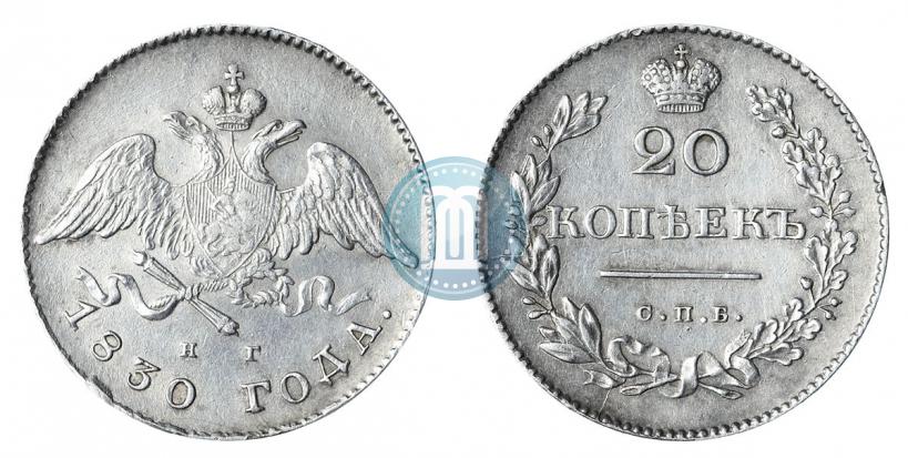 20 копеек 1830 года СПБ-НГ . Серебро. Гурт пунктир. Биткин # 137 (R1), Петров - нет руб., Ильин - 5 руб., Конрос # 144/5 144/6