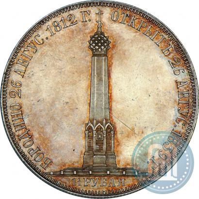 1,5 рубля 1839 года Н. CUBE F. "В память открытия памятника-часовни на Бородинском поле". Длинные лучи над головой. Серебро. Гурт рубчатый. Биткин # 892 (R1), Петров - 8 руб., Ильин - 8 руб., Конрос # 309/1