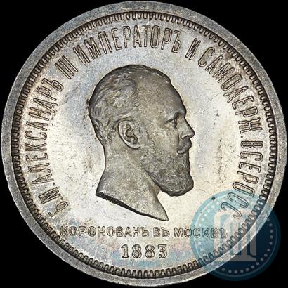 1 рубль 1883 года ЛШ "В память Коронации Императора Александра III". Серебро. Гурт гладкий. Петров - 1,25 руб., Конрос # 313/1