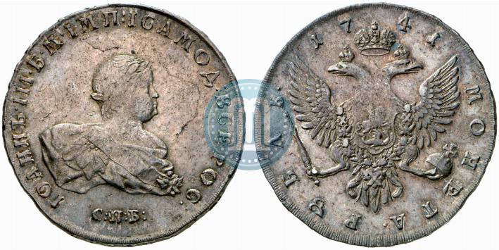 1 рубль 1741 года СПБ . Серебро. Гурт надпись. Биткин # 19 (R1), Петров - 15 руб., Ильин - 12 руб., Конрос # 62/3 62/5