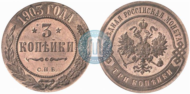 3 копейки 1903 года СПБ . Медь. Гурт рубчатый. Конрос # 190/37