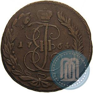 5 копеек 1764 года ММ . Медь. Гурт сетчатый. Петров - 0,75 руб., Конрос # 180/91