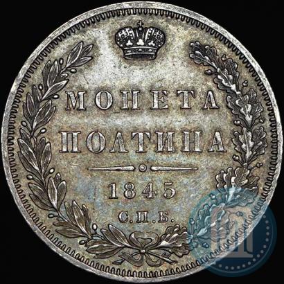 Полтина 1845 года СПБ-КБ . Серебро. Гурт надпись. Петров - 0,75 руб., Конрос # 118/31