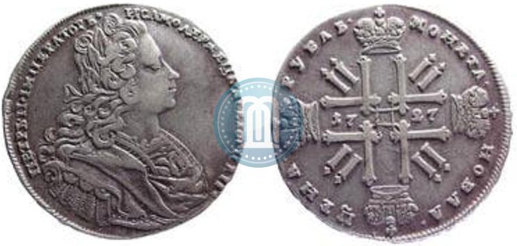 1 рубль 1727 года "Московский тип". Четыре наплечника. Серебро. Гурт надпись. Биткин # 31 (R2), Петров - 3 руб.