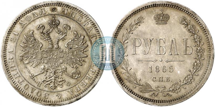 1 рубль 1865 года СПБ-НФ . Серебро. Гурт надпись. Биткин # 77 (R), Петров - 3,5 руб., Ильин - 6 руб., Конрос # 80/8