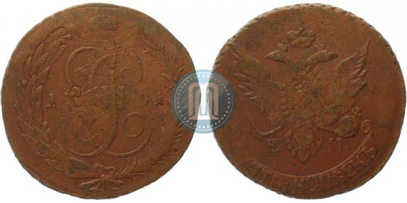 Фото 5 копеек 1791 года ЕМ "Павловский перечекан"