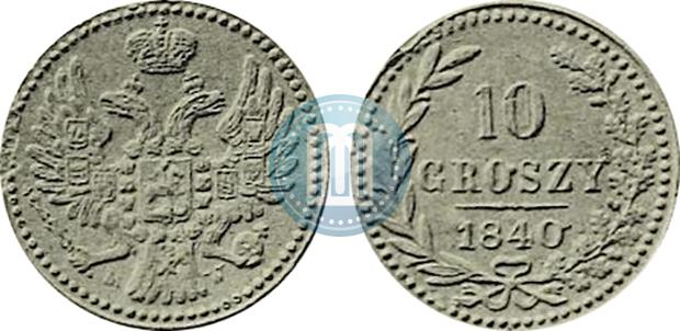 10 грошей 1840 года MW "Пробные". Ободок из точек. Медь. Гурт гладкий. Биткин # 1232 (R4), Ильин - нет руб., Конрос # 540/2