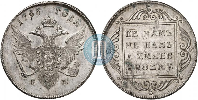 1 рубль 1796 года БМ . Серебро. Гурт шнур влево. Биткин # 14 (R1), Петров - 12 руб., Ильин - 8 руб., Конрос # 72/1