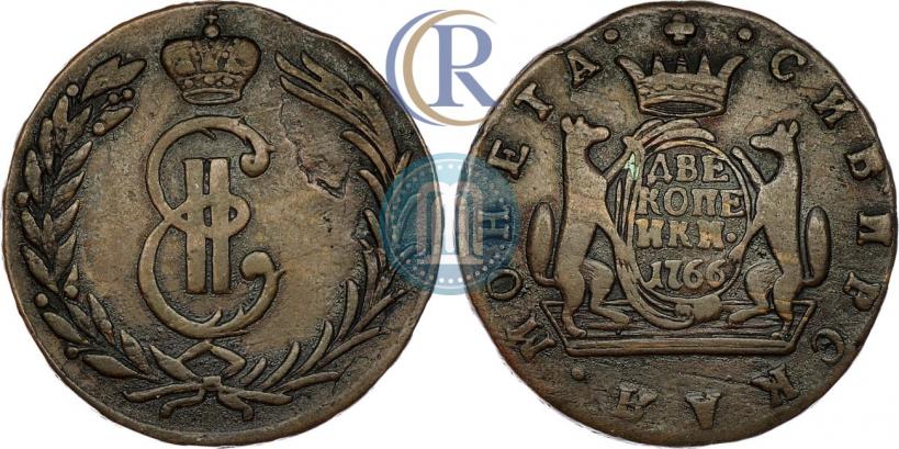 2 копейки 1766 года . Медь. Гурт надпись. Биткин # 1094 (R2), Петров - 35 руб., Ильин - 8 руб., Конрос # 194/3