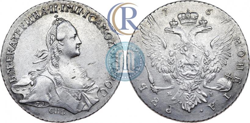 1 рубль 1767 года СПБ-EI-Т.I. . Грубый чекан. Серебро. Гурт шнур влево. Биткин # 199 (R1), Петров - 20 руб., Ильин - 5 руб., Конрос # 70/25