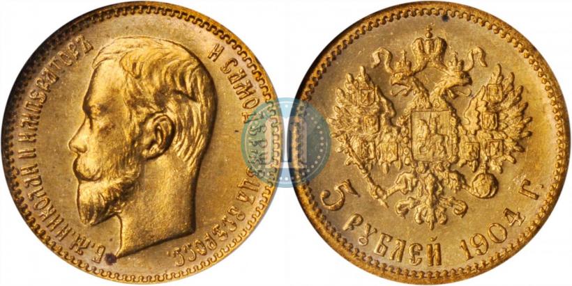 5 рублей 1904 года (АР) . Золото. Гурт узорчатый. Конрос # 20/14