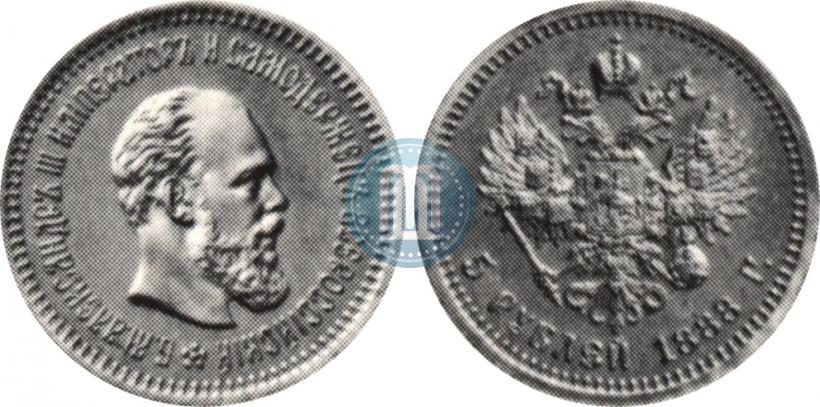 5 рублей 1888 года (АГ) . Портрет с длинной бородой. Золото. Гурт надпись. Конрос # 19/4