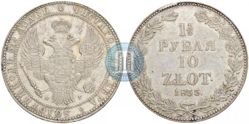Цена 1,5 рубля - 10 злотых 1833 года НГ