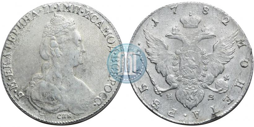 1 рубль 1782 года СПБ-ИЗ . Серебро. Гурт шнур влево. Петров - 2,5 руб., Конрос # 71/7