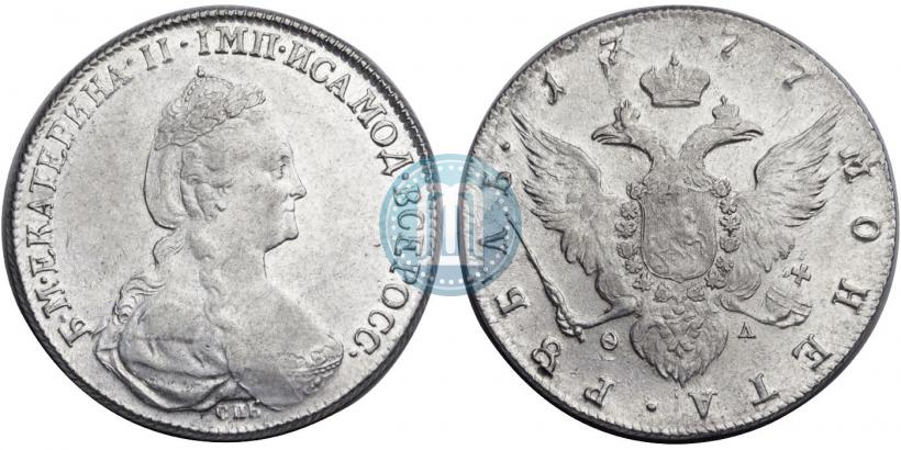 1 рубль 1777 года СПБ-ФЛ . Серебро. Гурт шнур влево. Петров - 4 руб., Конрос # 71/2