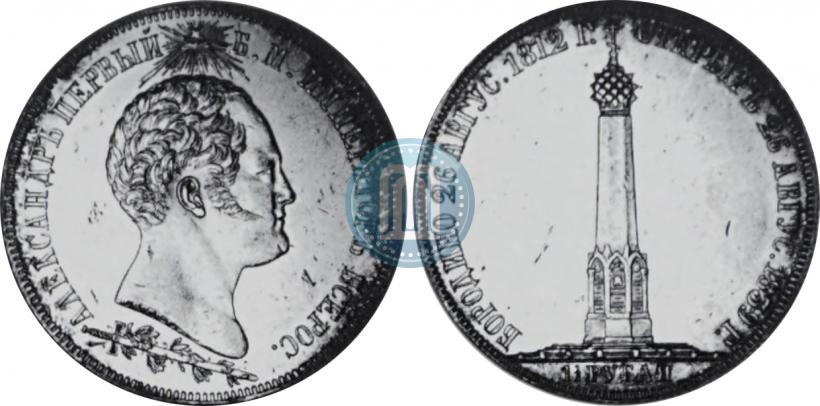 1,5 рубля 1839 года Н. CUBE F. "В память открытия памятника-часовни на Бородинском поле". Длинные лучи над головой. Серебро. Гурт рубчатый. Биткин # 892 (R1), Петров - 8 руб., Ильин - 8 руб., Конрос # 309/1