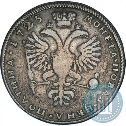 Полтина 1725 года СПБ "Портрет в латах". Над головой две звезды. Серебро. Гурт шнур влево. Биткин # 1377 (R)