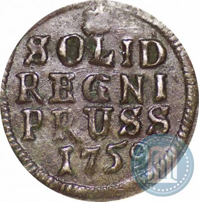 Солид 1759 года . Серебро. Гурт гладкий. Биткин # 780 (R1), Петров - 6 руб., Ильин - 2-5 руб., Конрос # 427/1