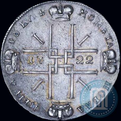 1 рубль 1722 года . "ВСЕРОССИIСКИI". Серебро. Гурт надпись. Биткин # 490 (R)