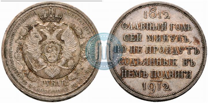 1 рубль 1912 года (ЭБ) "В память 100-летия Отечественной войны 1812". Серебро. Гурт надпись. Конрос # 317/1