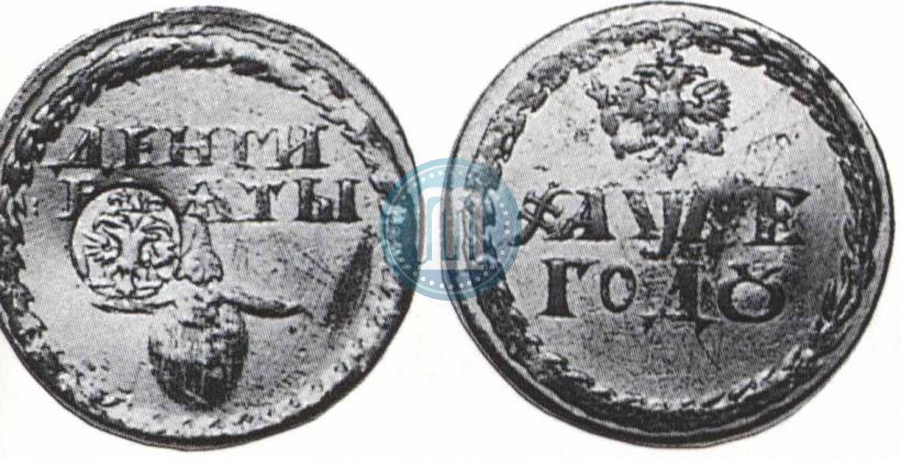 Бородовой знак 1705 года "С надчеканом". Узкая борода. Медь. Гурт гладкий. Биткин # 3893 (R2)