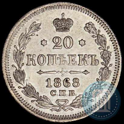 20 копеек 1868 года СПБ-НІ . Серебро. Гурт рубчатый. Конрос # 146/42