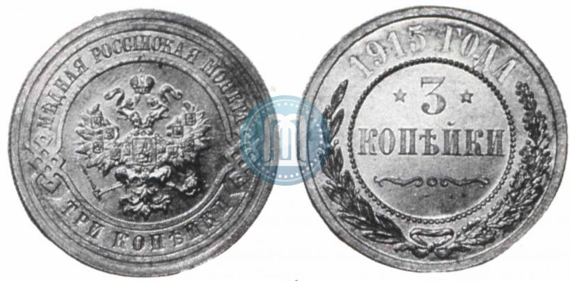 3 копейки 1915 года . Медь. Гурт рубчатый. Конрос # 190/49