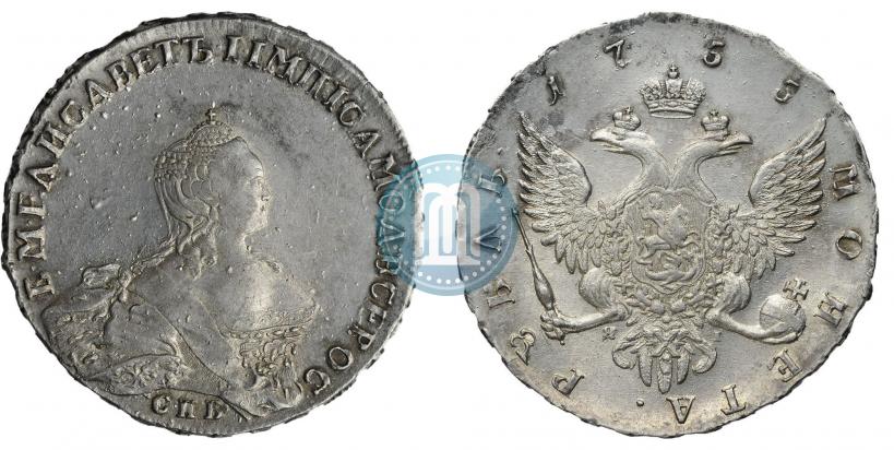 1 рубль 1755 года СПБ-ЯI . Серебро. Гурт надпись. Петров - 2,5 руб., Конрос # 66/4
