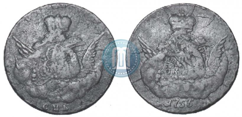 1 копейка 1755 года СПБ . Медь. Гурт сетчатый. Биткин # 532 (R), Петров - 1 руб., Конрос # 206/3